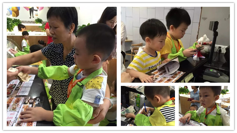 BBunion国际早教顺德中心首次职业体验――“布莱恩小小服务员”于8月20日完满结束,小小服务员依次体验了:迎宾、为客人点餐、收银、送餐等环节,每一环节都表现得相当出色,活动结束时,每位小朋友都得到布莱恩精心准备炸鸡套餐一套作为工作的报酬,满载而归。